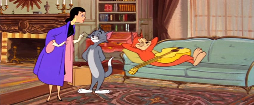 As mentioned above, MGM is the studio that used CinemaScope the most. A good number of their cartoons from 1954 and 1955 were filmed this way, but from 1956-1958, all of their cartoons were in CinemaScope. Believe it or not, but there was even some issues with THAT, as several places had incorrectly showed these cartoons in full frame, resulting in most of the picture being gone and making these hard to watch as a result. On home media releases aimed at collectors, they are restored and fortunately, in their correct aspect ratio (most notably on the Tom and Jerry The Complete CinemaScope Collection Blu-ray set, released a little over a year ago in February 2025, which were all subsequently put on the Tom and Jerry Golden Era Anthology Blu-ray set this past December). Seen below is a comparison of the 1957 Tom and Jerry cartoon, “Mucho Mouse” in its proper widescreen presentation and then in an improper full frame version.